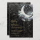 Sob O Convite Celestial De Casamento Da Lua Crescente Das Estrelas. Celebrar uma noite debaixo das estrelas com este tema de casamento celestial escuro. Um elegante, porém brincalhão, com a cor d'água preta do céu, estrelas e lua cercadas por um céu nublado. Coloração em preto, branco, ouro e cinzas. Uma mistura elegante de tipografia de escrita e uma letra serif numa coloração dourada (não dourada). Terá uma noite mística sob o céu da lua crescente. Disponível como um convite impresso ou como um convite digital para download que você pode enviar por e-mail ou que foi impresso localmente!