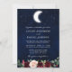 Convite Celestial de Casamento. Céu azul de água com estrelas e a lua. Borgonha azul-rosa azul-borrifada Marsala. Greenery Eucalyptus Sai. Foto de volta.