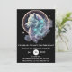 Traga seus convidados para uma galáxia sonhadora com este convite de aniversário de lobo luonado! Um lobo branco majestoso olha para a distância, cercado por espirais luminosos e faíscas celestes. A lua de cheio radiante e as estrelas num fundo negro profundo criam um humor mágico, de outro mundo - perfeito para uma festa de aniversário noturna, lobo, ou fantasia.