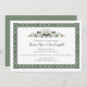 Estes belos convites horizontais para casamentos de temas irlandeses têm uma intrincada e ornamentado fronteira de trabalho do nó celta em paleta verde clássica e ilustrações botânicas complexas de flores florescem e saem de cima dos seus detalhes de casamento. Cartão invertido para verde sólido coordenado. No mesmo design, você pode encontrar placas RSVP, cartões de informação, cartões de menu, números de tabela, plano de mesa, placas de lugar, sinal de boas-vindas e muito mais! Portanto, podem ter a certeza de que o tema será consistente do princípio ao fim. A fonte e a cor podem ser facilmente alteradas para ajustado de sua necessidade, para obter ajuda ou solicitação personalizada, escreva em citronelladesign@gmail.com ou entre em contato conosco através da loja.