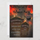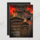Cemitério Spooky com tombstones e pássaros negros no Convite de festas da Noite de Halloween. Informações de texto sobre tombstones. Fundo assustador e estranho com névoa e flashes ou cor vermelha/laranja e escura. Trabalho de arte por Patricia Villa.