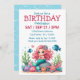“Explore este encantador desenho animado caprichoso de uma encantadora sereia sentada em uma rocha vibrante coberta de coral, cercada por peixes amigáveis. A sereia tem cabelos cor-de-rosa longos e fluídos e uma cauda azul-esverdeada vibrante. Ela tem dois peixes azuis e um rosa nadando perto e uma estrela-do-mar cor-de-rosa feliz descansando entre as algas marinhas e o coral coloridos. Esta ilustração adorável vai encantar crianças e adultos. Acima da ilustração há modelos para adicionar todos os detalhes da sua festa.