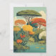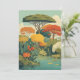 Uma paisagem africana elegante e estilizada com folhagem vívida em vermelho, laranja, amarelinho e verde em torno de uma lagoa tranquila — perfeita para decoração e presentes no tema da natureza.