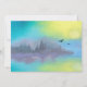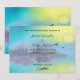 Uma paisagem pitoresca em cores pastéis com montanhas e árvores abetos ao fundo e um lago turquesa brilhando amarelo com o reflexo do sol. Alguns pássaros podem ser vistos voando ao longe. Personalize com os detalhes do seu casamento.