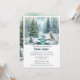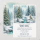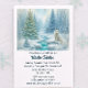 Este convite de Solstício de Inverno apresenta uma paisagem nevada com árvores de abeto na floresta, uma raposa branca ártica e uma árvore de Natal com luzes ao lado de um riacho congelado. Esta cena nevada é perfeita para uma celebração de jantar do Solstício de Inverno. Personalize este convite com o seu próprio texto. Arte de aquarela digital AI projetada por Susang6