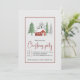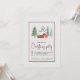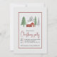 Paisagem de inverno com árvores, uma casa e convite de festas de Natal com neve.