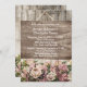 Cerca De Madeira com Rosa Pintado Convite De Casamento. O Wooden assina na cerca com o anúncio do casamento. A imagem da cerca continua atrás. Personalize este modelo com suas informações.