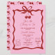 Ela é a cereja em cima! Celebre a chegada da sua querida menina com este convite charmoso e na moda. Apresentando um design de cereja rosa e vermelha, este adorável convite é decorado com um arco bonito, um bolo delicioso, e um gráfico carinhoso de ursinho de pelúcia — perfeito para honrar a garotinha que já está trazendo tanta alegria. O tema da cereja branca continua com um padrão opcional de cereja martelada no verso, adicionando uma dose extra de charme e doçura. Totalmente personalizável com seus detalhes de eventos, este convite é perfeito para celebrar sua menina de uma forma tão especial quanto ela. Quer você esteja hospedando uma reunião acolhedora, um brunch, ou um chá caprichoso, este design vai dar o tom para um dia delicioso. Principais recursos: - "Ela é a cereja no topo!", slogan para celebrar a sua menina - Placa gráfica rosa e vermelha - arco adorável com ilustrações de bolo e ursinho - design opcional de costas com torcida de cereja para adicionar capricho - Texto totalmente personalizável para incluir todos os seus detalhes de eventos - Tema doce e brincalhão para corresponder à alegria da ocasião Bem-vinda à sua menina estilo e doce. Ordene agora que ela faça seu chá de fraldas tão especial quanto ela é!