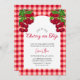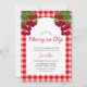 "Ela é a Cherry on Top", tema do chá de fraldas de outono com cerejas e xadrez de gingham vermelha.