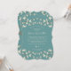 Uma ilustração original de lindas flores de cerejeira brancas creme marfim ou flores de sakura da primavera com galhos marrom claro em um fundo verde turquesa. Este é um convite moderno para o dia do casamento / chá de casamento / chá de casal / festa de noivado / chá de noivado / chá de noiva / jantar de ensaio de casamento.