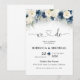 Convite à cerimônia de casamento de Rosas marinhos Azul e Branca. Este na moda e elegante chá de casamento apresenta lindas cores d'água Marinho Blue e White Roses pintadas manualmente. Localize itens correspondentes na Coleção de Rosa Azul e Branco do Marinho.