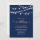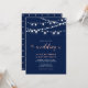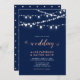Celebre seu dia especial com este modelo de convite de casamento moderno na moda. Este design apresenta belas luzes de cordas e tipografia com tema rosa ouro e marinho azul. Convites e material de festa estão disponíveis no meu compro BaraBomdesign.
