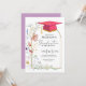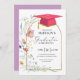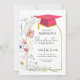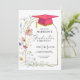 Estas flores silvestres coloridas têm um quadro de chapéu cor-de-rosa, e o convite para a cerimônia de graduação contém um chapéu cor-de-rosa e formando dourado e uma tipografia personalizada preta.