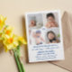 Convite fotográfico minimalista para uma cerimônia de nomeação com espaço para quatro das suas fotos numa simples colagem. Convite à cerimônia de nomeação azul personalizado com um monograma e quatro fotos do seu filho. Um convite à cerimônia de nomeação em azul brilhante e branco com fotos.