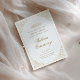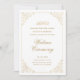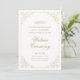 Celebre sua cerimônia de Walima islâmica muçulmana com este cartão de convite de recepção vintage. Um simples fundo branco creme define um tom elegante, enquanto os ornamentos de folhas florais barrocas douradas decoram os cantos desta borda ornamentada. A redação em árabe está em cor dourada. Os nomes do casal recém-casado aparecem em uma tipografia formal e atemporal. "Cerimônia de Walima" é escrita em roteiro elegante para dar um toque romântico e luxuoso.