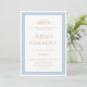 Cerimônia Real Aqiqah de Pastel azul celebrando o nascimento do pequeno príncipe recém-nascido. Essa placa mínima de convite de quadro retangular tem um design moderno e chic correspondente a uma tipografia de script dourado. Cartão branco. Personalize este modelo editando o estilo e o tamanho da fonte, assim como as informações fornecidas sobre os detalhes desta alegre ocasião islâmica, como o nome do casal feliz e seu filho. Aqeqah. Caligrafia árabe. Eterno. Imprimível. Um envelope vem junto com este cartão.