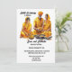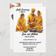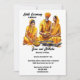 Celebrar o casal de noiva com esta mulher indiana, de forte conteúdo, vestindo um sari amarelo alaranjado. Ela está sentada de pernas cruzadas atrás de uma tigela cheia de pó turmérico e ao lado da noiva e seu pai também sentados atrás de tigelas cheias de turmérica. Estão todos vestidos com roupas tradicionais de laranja amarela e estão a assistir a uma cerimônia de Haldi para dar bênçãos, proteção e purificação da noiva e do noivo antes do dia do seu casamento. Modelos pretas para o seu texto personalizado aparecem no fundo branco estrelado e outro no verso para obter informações adicionais que os seus convidados possam exigir. Se não for necessário mais pormenores, suprimir apenas o texto no verso. Esta design gráfica impressionante é ideal para celebrar Mehndi; Mehendi; Sangeet ou qualquer celebração étnica asiática a favor de um casal de noiva.