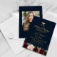 guião e lindas flores de marinho burgundy. Você pode personalizar este modelo de convite de formatura com seus próprios detalhes.