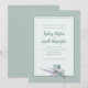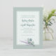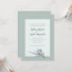 Convites de casamento com design minimalista e texto moderno. Cores azul-cinza com um raminho de folhas de eucalipto na parte inferior. Personalize as fontes impressas e manuscritas em três seções. A aparência em camadas tem verde muito claro como fundo com linhas finas para enquadrar o texto. Os nomes do casal estão em letra manuscrita. O convite começa com “O prazer de sua companhia é solicitado no casamento de” e é fácil de personalizar de acordo com as suas necessidades. O verso é azul-cinza escuro e sólido. Atualize o papel conforme necessário.