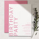 Convites de festas de aniversários modernos e elegantes com um sotaque rosa brilhante. Pode ser mudado para se adequar a qualquer idade.