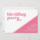 Convites de festas de aniversários modernos com "festa de aniversário" em letras maiúsculas e minúsculas. Convites legal e ocasionais em um esquema de cores rosa e branco brilhantes. Pode ser mudado para qualquer idade.