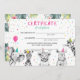 Um belo certificado de adoção animal para animais selvagens Safari, excelente para animais tropicais, selvagens e festas de aniversário! As lindas cores dourado, verde e tropical ajustado qualquer estilo de festa! Inclui um design de retorno exclusivo.
