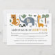 Certificado de Adoção de Animal Festa de Aniversário de Dois Pequenos Selvagens Safari com características de girafas, elefantes, leões, zebras, leopardos, macacos, cobras, crocodilos, animais selvagens fofos e coloridos com texto em tipografia moderna preta e mostarda. Perfeito para meninos ou meninas, celebrações de festa de aniversário de dois anos de idade. Projetado por Evco Studio. Para itens coordenados, visite www.zazzle.com/store/evcostudio