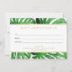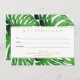 Coordena com o Modelo de Cartão de Visita de Folhas de Monstera Tropical em Aquarela da 1201AM. Um elegante motivo tropical de folhas de monstera em aquarela se torna um padrão atraente neste certificado de presente personalizável. Arte e design © 1201AM Design Studio