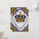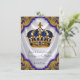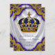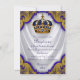 O convite régio extravagante do baptismo do príncipe dos azuis marinhos e do ouro com azul e ouro coroa em um fundo branco bonito do redemoinho do cetim dos azuis marinhos e do ouro. Este convite ornamentado do baptismo do príncipe do azul e do ouro é personalizado facilmente para seu evento adicionando seus detalhes do evento, estilo de pia batismal, tamanho & cor de pia batismal, e expressão.