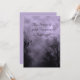 Convites de casamento personalizados com um céu assustador com uma névoa roxa e árvores ao longo de uma estrada assombrada, ravens góticos e uma lua de cheio nublado e letras de roteiro vintage em preto.