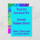 Este convite fractal colorido é cheio de cores brilhantes e vibrantes como o arco-íris azul-claro. Você pode personalizar o texto clicando em "Personalizar" para torná-lo seu. Então você terá seu próprio convite colorido e personalizado que pode comprar para todos os seus eventos especiais. Além disso, você pode escolher o tamanho, a forma, o tipo de papel e a impressão antes de comprar. Estes convites são excelentes para festas de aniversário, eventos especiais, celebrações, casamentos, salvar as datas, R.S.V.P e chás de fraldas.