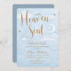 Um pouquinho de céu está a caminho! Este convite para o céu azul e dourado pastel apresenta uma tipografia moderna com estrelas, nuvens, lua celestial e sotaques anjos. Personalize todo o texto abaixo do céu enviado com suas informações.