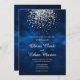 Este convite de casamento sobre o tema celeste apresenta uma mistura de confete prateado num fundo azul do universo com estrelas. Você pode personalizar este cartão no menu editar design. ele faz parte de um pacote de casamento correspondente.