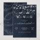 Céu noturno estrelado com cordas de luzes Convites de churrasco Fazemos BBQ. Ótimo para recepção de casamento, jantar de ensaio, chá de panela ou festa de noivado! Fundo azul escuro de aquarela com estrelas espalhadas. Muito espaço para adicionar mais informações. Precisa de ajuda com o layout? Envie um e-mail para tkatz@me.com