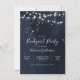 Convite de festa no quintal com céu noturno estrelado e cordões de luz