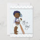 Adorável convite de chá de bebê afro-americano, maldito azul. Este belo convite preto e azul para chás de fraldas de baseball é facilmente personalizado para o seu evento simplesmente adicionando detalhes de evento, estilo de fonte, tamanho de fonte e cor e texto.