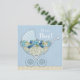 Adorável convite para chá de beige castanho e bebê carruagem azul. Este belo convite para o chá de fraldas azul e marrom-marfim apresenta um elegante fundo azul-bebê com faixa de cor bege com bege elegante e carruagem azul para bebês na frente e calçados doces para bebês no verso. Este convite para chás de fraldas bege e azul é facilmente personalizado para o seu evento adicionando detalhes do evento, estilo de fonte, tamanho de fonte e cor e texto.