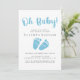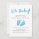 Este simples convite para o chá de um bebê fofo apresenta "Oh Baby!" num guião azul pastel e uma ilustração azul pastel dos pés do bebê. Você pode personalizar facilmente com os detalhes do chá.