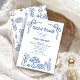 Bridal Bridal Bridal Bridal Brunch Chá de Whimsical Blue Convite chá de panela de brunch doce e ousada, apresentando várias comidas, bebidas, flores e arcos. Este chá de panela azul peculiar é totalmente editável.