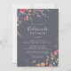 Este clássico convite para chás de lanches azuis é perfeito para um chá de casamento rústico. A design apresenta flores silvestres brancas, amarelas, roxas e brancas com folhagem em fundo de rosa e aquarela verde.