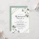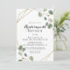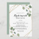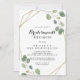 Este convite para chás de brunch, dourado, é perfeito para um chá de casamento rústico. O design apresenta ramificações botânicas verdes, desenhadas à mão, de eucalipto e folhas adornando uma elegante estrutura geométrica.