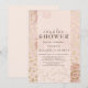 Rosa Dourado Convite para Chá de casamento de Casais de Folhagem de Moda. Moda macia e elegante de rosa para o tema do casamento de na moda com pistas de folhas e padrões de sotaque geométricos. Todo o texto está pronto para você personalizar/personalizar.