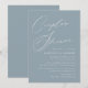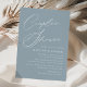 Convites simples para chás com "Chá de Casal" exibidos em um script de caligrafia branca com fundo azul empoeirado. Personalize os convites para chás azuis empoeirados com os nomes dos casais e os detalhes do chá abaixo. O chá moderno convida a reversão para mostrar um fundo azul poeirento sólido.