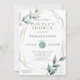 Chá de panela de Aquarela | Botânica Verde de Jade Cinzento - variações do Verde de Jade Cinzento - folhas verdes acinzentadas de cima e de baixo sobre a estrutura dourada do estilo terrário, uma mão falsa fez textura de papel num tom verde de jade muito leve no verso. Fresco e simples, mas deliciosamente elegante. Esta é parte de uma coleção de suite de casamento coordenada por design, projetada pelo BarefootBride™. Possui um estilo de texto clássico simples (que pode ser alterado se você quiser clicar em Personalizar este modelo e, em seguida, na lista suspensa, clique em Clicar para personalizar ainda mais - aqui você pode alterar a fonte e as cores do texto)