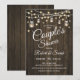 Convite para Chás de casal - design de estilo Rustic Wood Rustic com madeira escura e luzes de cordas de fadas.
