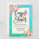 Modelos de Chá / Chá de panela / Cartão de Convite para Chás de casamento modernos - Manuscrito de Lettering Elegante e Flores Rosa Vintage de Watercolor em Bolinhas Verde Azul Teal e Azul Ouro Falso em Fundo de Capas Casais Confetti. Um Design perfeito para o seu grande dia. Todo estilo de texto, cores, tamanhos podem ser modificados para ajustado das suas necessidades!