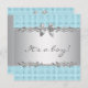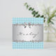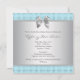 Cinzas prateadas com um convite de chá de um menino de classe de fundo azul e branco. Adicione seus detalhes à frente e atrás, simplesmente escolhendo o botão laranja "Personalizar!" para começar a adicionar detalhes do evento, estilo da fonte, tamanho da fonte e cor e texto. Observe que todos os designs de convite que você encontrará no Zazzle são gráficos impressos em estoque de papel plano sem joias reais, arcos, levantados, gravados em relevo ou peças ou peças adicionadas.