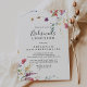 Este clássico e colorido convite para chás de lua para madrinhas selvagens é perfeito para um chá de casamento rústico. A design apresenta flores silvestres brancas, amarelas, roxas e brancas com folhagem em fundo de rosa e aquarela verde.