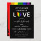 Encantador casal Lgbt convite para chás com orgulho arco-íris no vamos chá-os com amor contra um fundo negro.