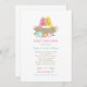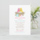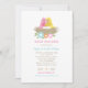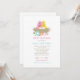 O design de convite para chá de fraldas de de aves nidificação moderna apresenta dois pássaros amados e seu ovo bebê em um ninho de galhos rústicos adornados com flores. As cores do convite incluem rosa, amarelo, azul-ovo do pino, laranja, verde e castanho-bronzeado.